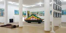 Exposition sur Penda Sarr Ngaolé .Cette image évoque une "pirogue thioubalo" utilisée lors des activités de "pekane".